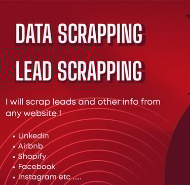 We offer custom web scraping and data extraction services from publicly accessible sources across multiple platforms such as Google Maps, LinkedIn, Instagram, Facebook, Airbnb, business directories, e-commerce stores, and other public websites. Our service is designed to collect structured, relevant, and high-quality data for business research, market analysis, and intelligence purposes. All data extraction is performed in a compliance-first manner, focusing only on public information and respecting platform policies and applicable data protection laws. Data is delivered in clean formats like Excel, CSV, or Google Sheets as per client requirements. Also, we make Clean GUI Dashboard for easy search and filter.